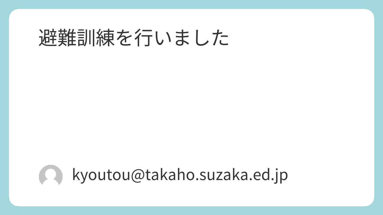 火災を想定し、教室から安全に避難することができるように、避難訓練を行いました。校庭に避難した後、集団下校の訓練も行いました。「おはしも」の合い言葉も確認し、真剣に集中して取り組むことができました。